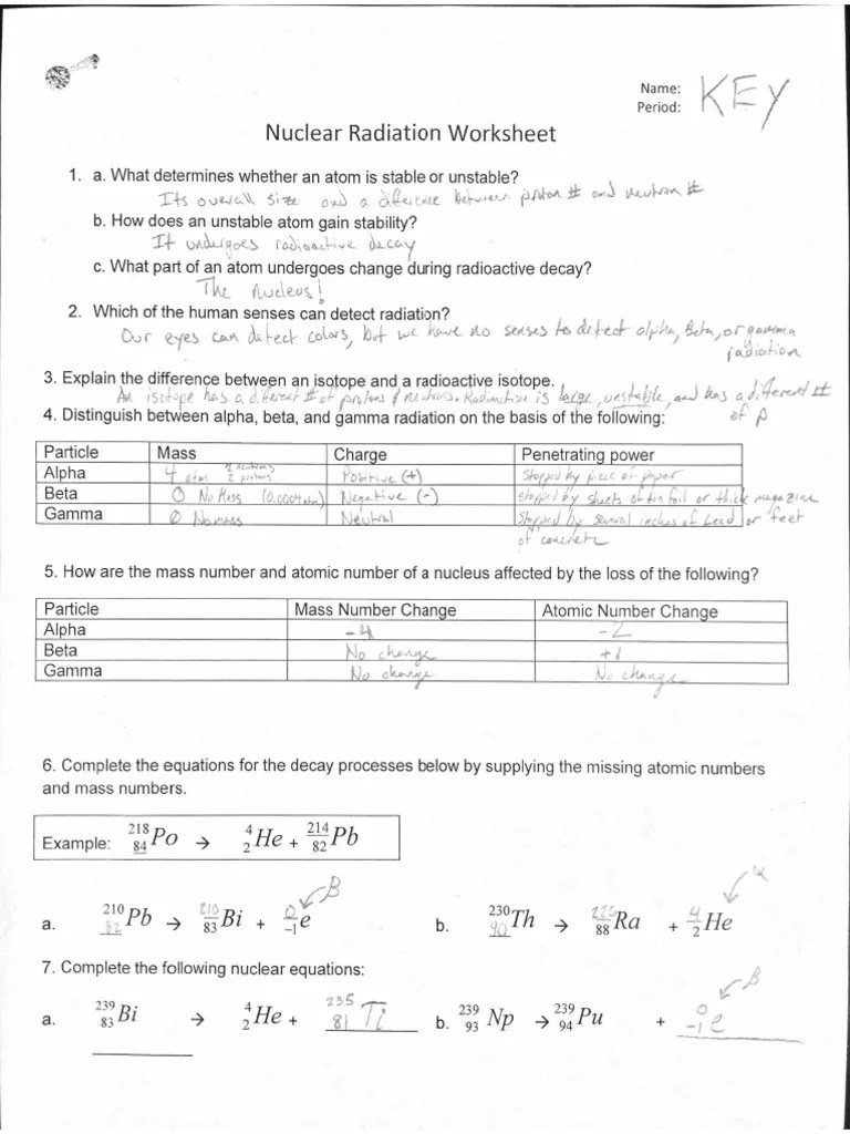 Radioactive elements decay at different rates (e.g., cesium has a half‐life of . A nuclear equation is written for an alpha decay. Choose an answer and hit 'next'. An alpha beta particles consist of radioactivity worksheet worksheets and electromagnetic radiation worksheet answers no mass and beta emission of? What type of nuclear decay .