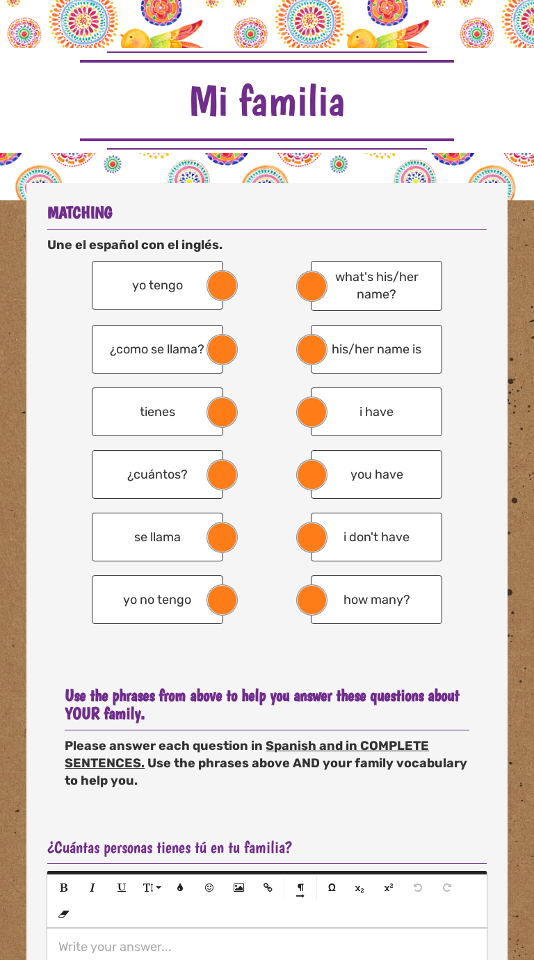 Browse mi familia worksheet resources on teachers pay teachers, a marketplace trusted by millions of teachers for original educational . Printable worksheets for spanish kids teachers. En mi familia somos cuatro personas. Mi padre es moreno, alto y tiene cincuenta y dos años. Learn the vocabulary about your family with these fun, colorful spanish worksheet sets!