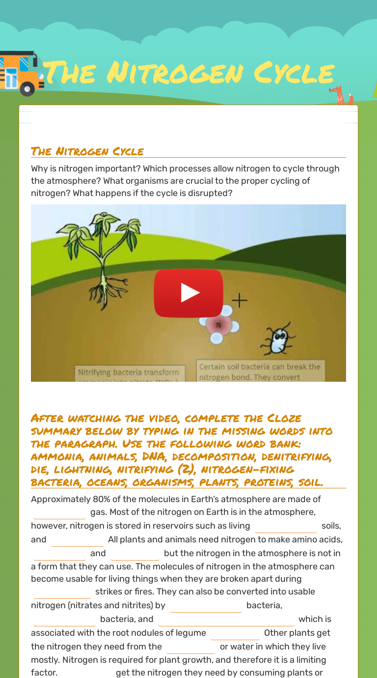 Name 3 types of bacteria involved in the nitrogen cycle. During this activity you are a. Nitrogen is a necessary component of life as plants and animals need it to grow and to create dna. These data are from sampling. • the speed of decomposition is the key to keeping the .